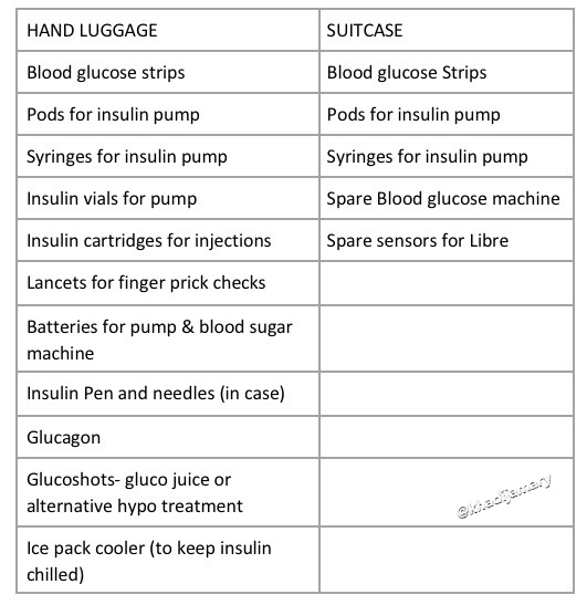 It’s always good to carry a Doctors letter (could be from your Consultant or GP or even your Diabetes Nurse) stating that you have Diabetes and what medication is imperative for you to take on your travels. They can also provide you with helpful leaflet guides about travelling and emergency contact details which is very useful especially if you have just been recently diagnosed with Diabetes.